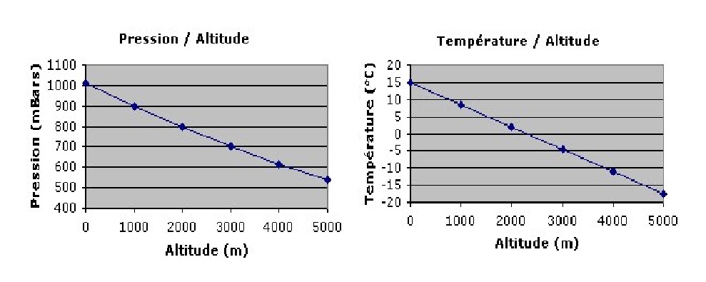Ici, nous négligerons tous ces paramètres qui influencent la température de l'air de manière locale pour nous intéresser seulement à l'influence de la variation de la pression atmosphérique sur la température, c'est le fameux : « on perd 1°C tous les 100m »
